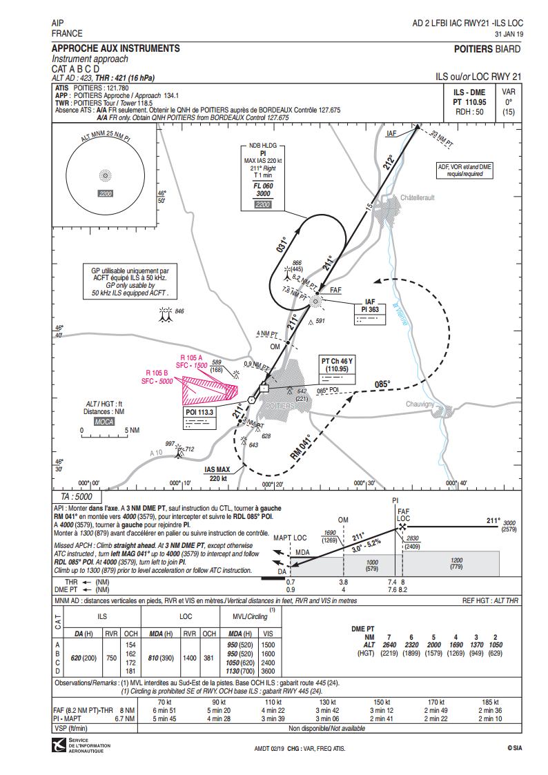 As an end to this section, please check below the traditional data and flat drawings used to describe an ILS maneuver to Poitiers – Biard, in France, and how it looks like in a static view from the Southeast, all information integrated, including Poitiers TMA, Poitiers SIV, La Rochelle SIV and Aquitaine SIV. Some of the elements have been rendered in transparent mode for easier visualization, although the complementary, real experience is only attainable with a 3D viewer, like SketchUp viewer or in 3D PDF format (see “Products” and “Download” sections in this website).
